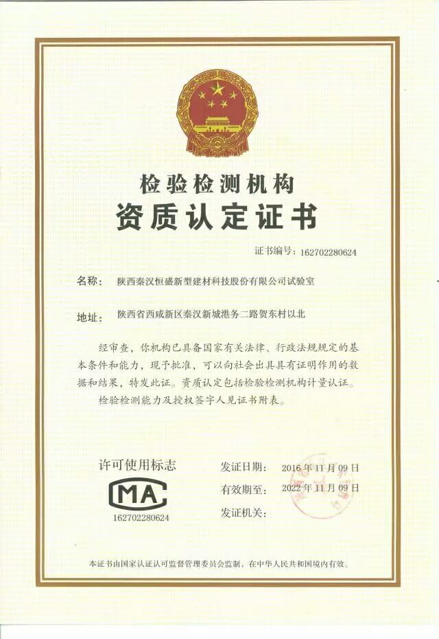 五、陜西秦漢恒盛新型建材科技股份有限公司試驗(yàn)室順利通過資質(zhì)認(rèn)定