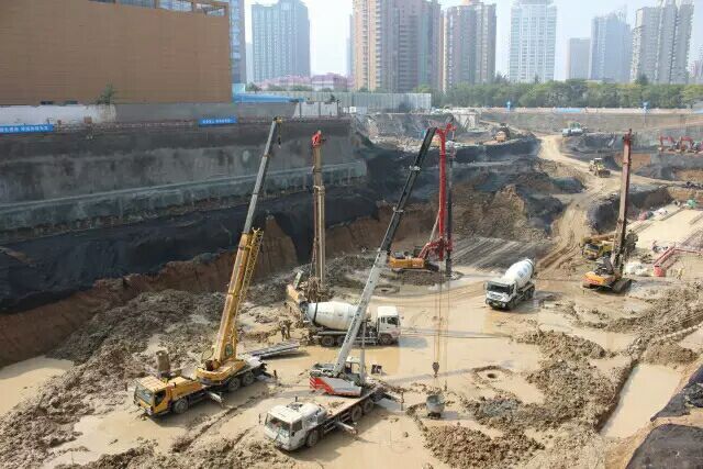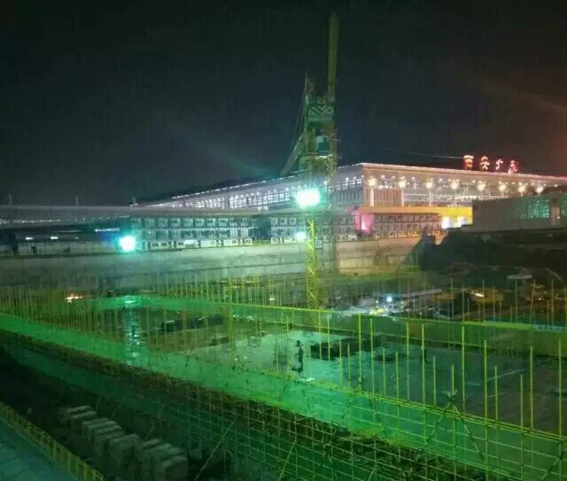 在兄弟單位秦漢公司的大力協(xié)助下,北客站3號(hào)樓(10月19——20日),北客站2號(hào)樓基礎(chǔ)筏板混凝土澆筑全部完成,出動(dòng)罐車30余輛,泵車3臺(tái),工時(shí)80小時(shí)許,共計(jì)混凝土澆筑量8000m3。