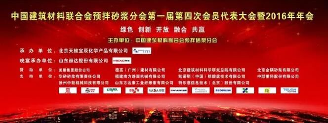 本次年會,由北京天維寶辰化學產(chǎn)品有限公司承辦,并得到了美巢集團股份公司、德高(廣州)建材有限公司、北京建筑材料科學研究總院有限公司、北京金隅砂漿有限公司的鼎力贊助,及華砂砂漿有限責任公司、福建南方路面機械有限公司、凱諾斯(中國)鋁酸鹽技術(shù)有限公司、中聯(lián)重科股份有限公司、徐州中新機械科技有限公司、山東方達康工業(yè)纖維素有限公司、特樂意信息(技術(shù))股份有限公司的大力支持。而本次年會的2016年度中國預拌砂漿行業(yè)年會答謝晚宴,由山東赫達股份有限公司獨家冠名贊助。
