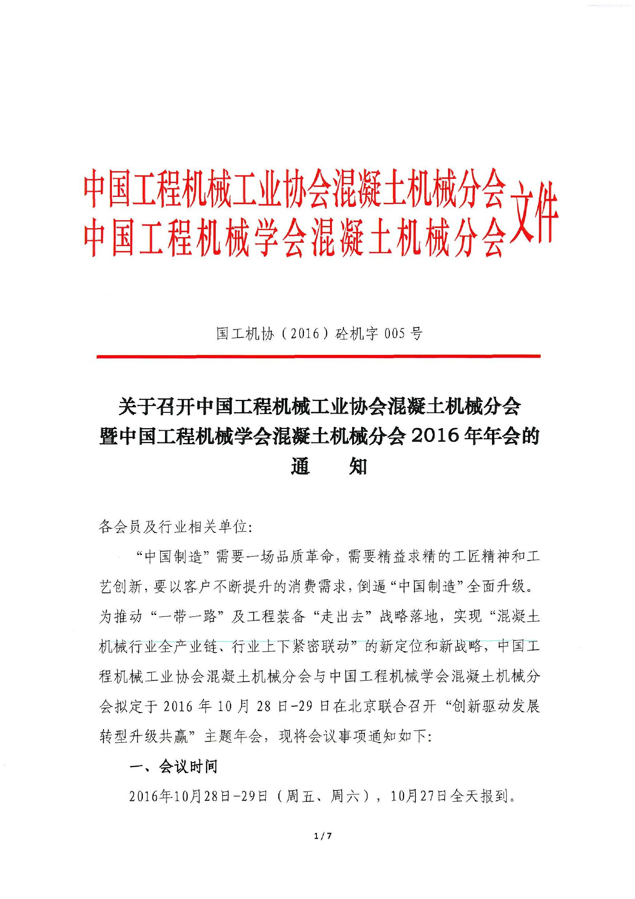 關(guān)于召開中國(guó)工程機(jī)械工業(yè)協(xié)會(huì)混凝土機(jī)械分會(huì)暨中國(guó)工程機(jī)械學(xué)會(huì)混凝土機(jī)械分會(huì)2016年年會(huì)的通知