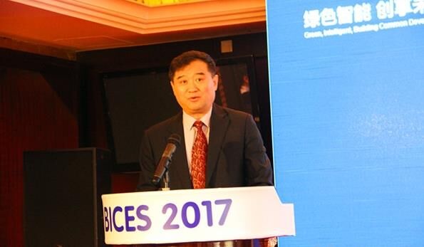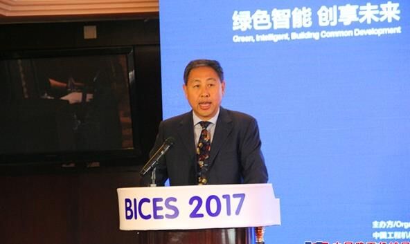 中國(guó)工程機(jī)械工業(yè)協(xié)會(huì)常務(wù)副會(huì)長(zhǎng)兼秘書長(zhǎng)蘇子孟做BICES 2017展會(huì)倒計(jì)時(shí)100天主題發(fā)言。
