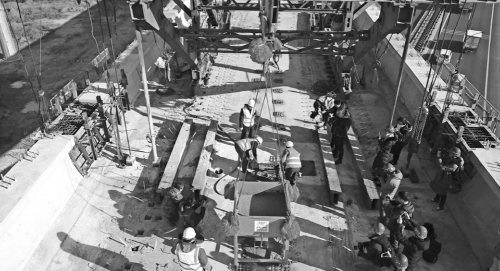 “主要采用掛籃現(xiàn)澆混凝土的施工方法。”他說,簡單來說就是整個施工作業(yè)面像一個籃子一樣,用架子掛起來。