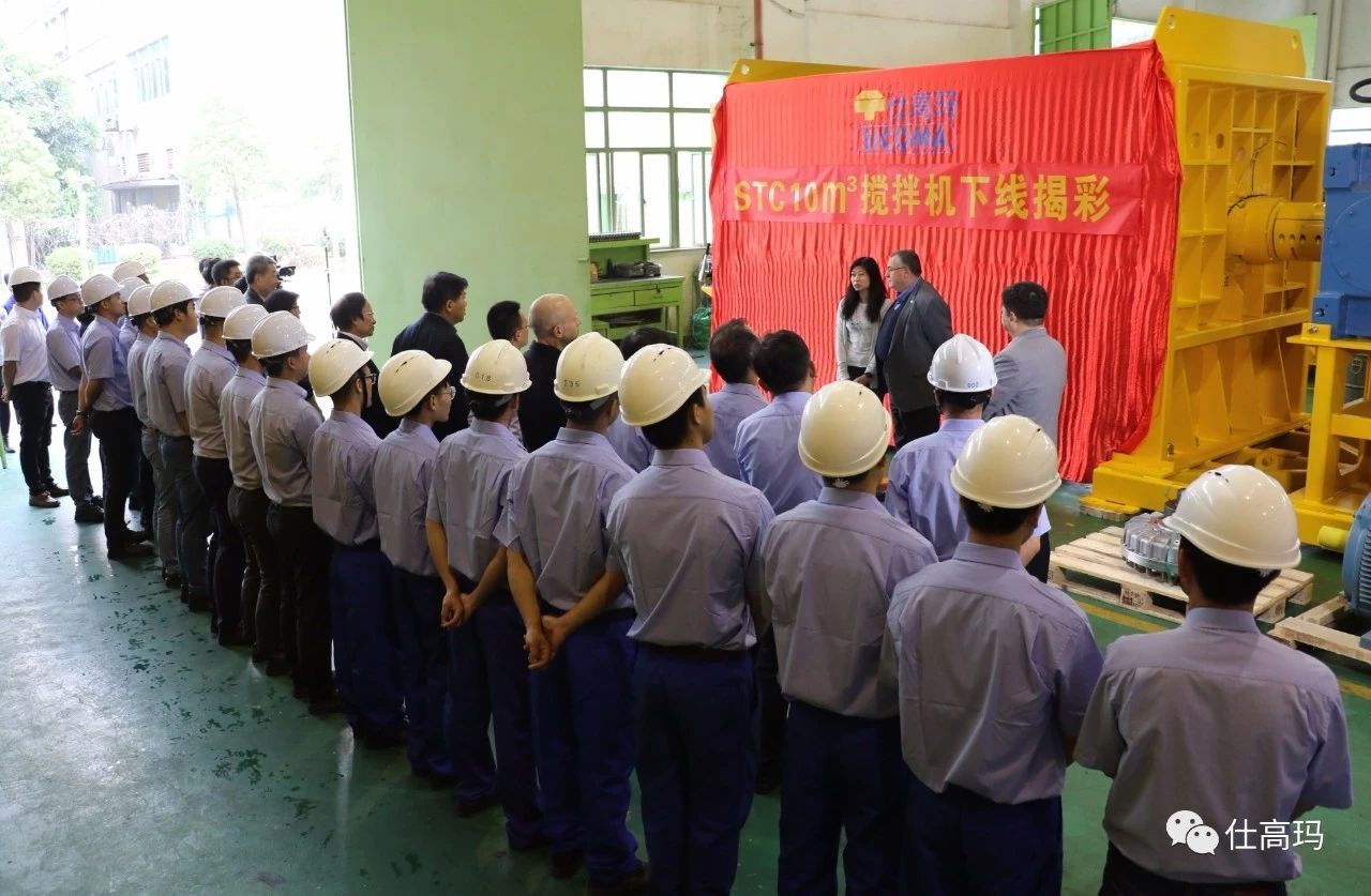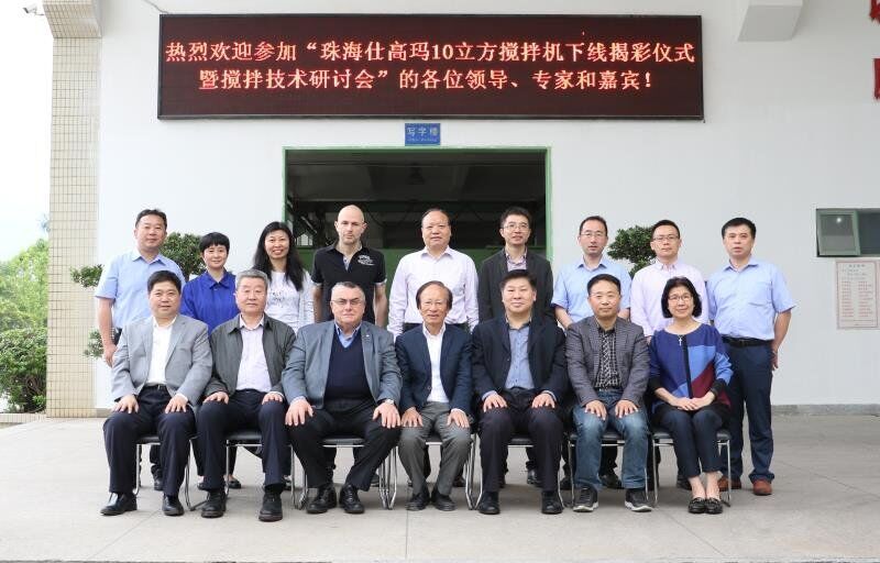 2018年4月18日,珠海仕高瑪公司10立方攪拌機(jī)下線揭彩儀式暨攪拌技術(shù)研討會在珠海仕高瑪公司舉行,中國工程機(jī)械協(xié)會混凝土機(jī)械分會符忠軒會長、長安大學(xué)馮忠緒教授、趙利軍博士、廣東長大公路工程公司楊東來總工程師、河南萬里路橋李冠峰總工程師、許昌德通特種混凝土公司孟超總經(jīng)理等領(lǐng)導(dǎo)、專家和嘉賓應(yīng)邀出席儀式和研討會,珠海仕高瑪公司股東黃志輝先生、意大利SICOMA公司董事長Mr. Galletti、總工程師Marco、珠海仕高瑪公司總經(jīng)理郗俊峰先生、財(cái)務(wù)總監(jiān)唐志敏女士及公司技術(shù)研發(fā)團(tuán)隊(duì)、生產(chǎn)團(tuán)隊(duì)、銷售團(tuán)隊(duì)、售后團(tuán)隊(duì)參加本次活動。