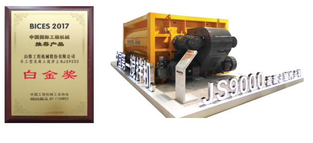 2017 BICES展上其憑借完美的外觀設計、無油軸端密封技術(shù)、雙料門結(jié)構(gòu)、軸端密封檢測技術(shù)、混凝土溫度及塌落度在線檢測裝置等多項核心專利技術(shù)獲得行業(yè)的認同、用戶的認可,相信在后續(xù)的使用中,JS9000水工型混凝土攪拌主機必將承擔重任,大放異彩!