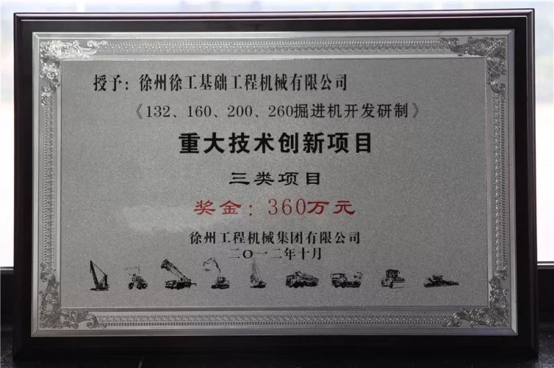 2011年,當年9月,徐工基礎推出首臺具有自主知識產權的EBZ160掘進機,其成功研制填補了徐工在煤礦掘進機方面的空白,當年順利通過煤安認證、實現(xiàn)銷售;2012年10月,EBZ135、160、200、260系列掘進機被授予徐工集團重大技術創(chuàng)新項目,獲得獎金360萬元。