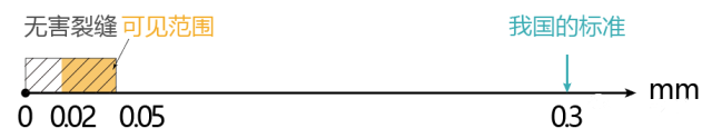 在正常使用荷載作用下,鋼筋混凝上結(jié)構(gòu)一般是帶裂縫工作的,一般肉眼可見的裂縫范圍為0.02~0.05mm,裂縫寬度小于0.05mm 的屬無害裂縫,對(duì)防水、防腐蝕與承重的影響均可忽略不計(jì)。
