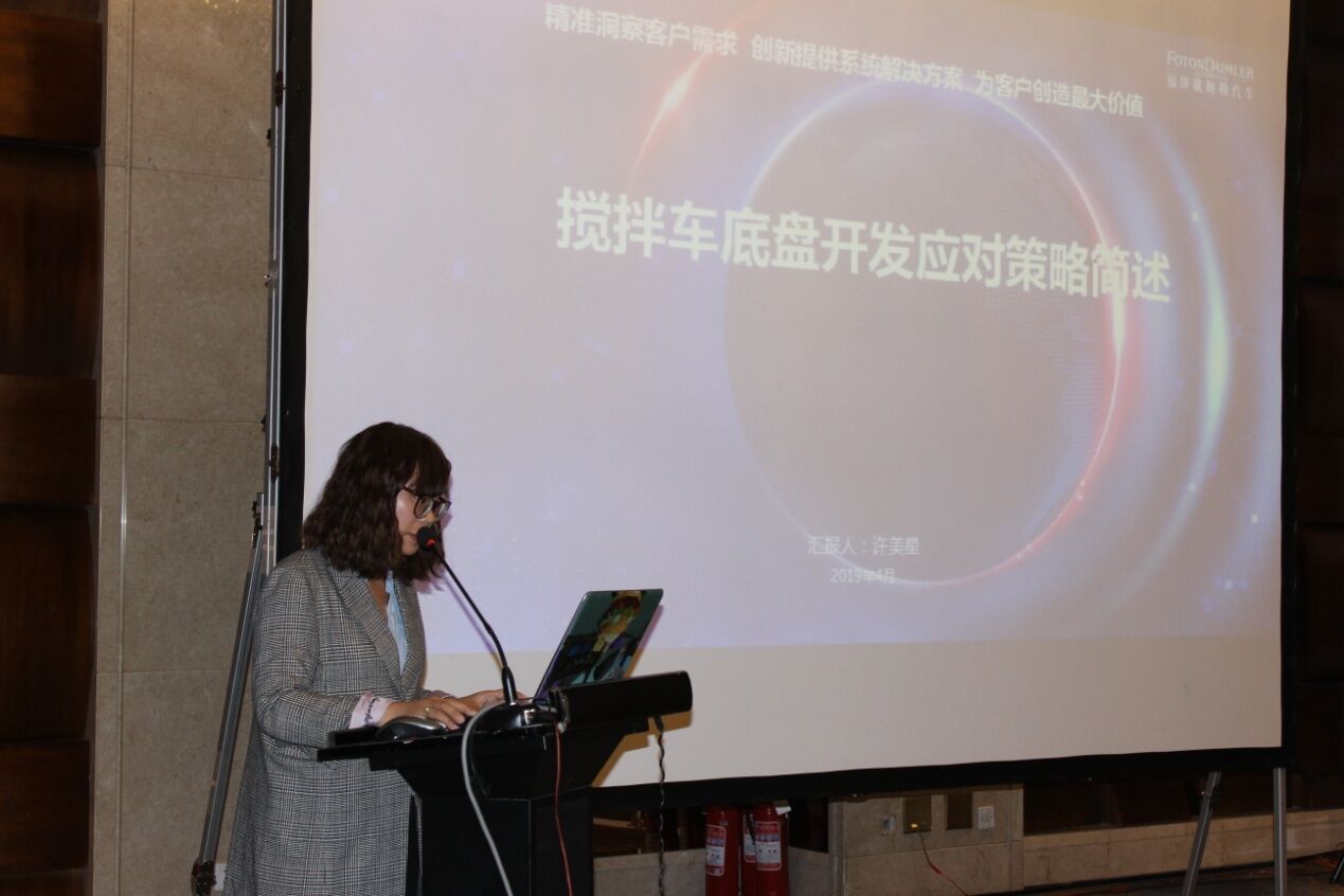 北汽福田汽車股份有限公司技術(shù)部部長許美星女士作了《適應攪拌車新法規(guī)之底盤設計》的主題報告,結(jié)合攪拌車的發(fā)展趨勢介紹了重卡發(fā)展的總體趨勢以及政策法規(guī)制定進程,有很多參考的價值和意義。同時許部長還介紹了認證體系中的主要應對項以及BFDA產(chǎn)品開發(fā)應對策略,讓與會者對于配套的底盤及政策有了更多了解。