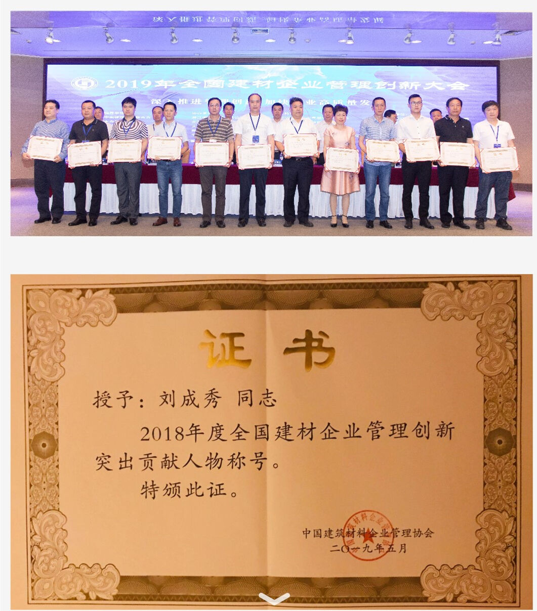 為深入學(xué)習(xí)貫徹習(xí)近平新時代中國特色社會主義思想和 黨的十九大精神,落實《中共中央、國務(wù)院關(guān)于營造企業(yè)家健康成長環(huán)境弘揚(yáng)優(yōu)秀企業(yè)家精神更好發(fā)揮企業(yè)家作用的意見》 (中發(fā)〔2017〕25 號),深入實施工業(yè)和信息化部等 11 部委 聯(lián)合下發(fā)的《關(guān)于引導(dǎo)企業(yè)創(chuàng)新管理提質(zhì)增效的指導(dǎo)意見》(工信部聯(lián)產(chǎn)業(yè)〔2016〕245 號),進(jìn)一步推動建材企業(yè)高質(zhì)量發(fā)展,促進(jìn)企業(yè)轉(zhuǎn)型升級和提質(zhì)增效,中國建筑材料企業(yè)管理協(xié)會于 2018 年 12 月~2019 年 4 月開展了“2018 年度全國建材 企業(yè)管理現(xiàn)代化創(chuàng)新成果和管理創(chuàng)新突出貢獻(xiàn)人物”審定活動,歷時五個月,經(jīng)初審、終審,評選出百位全國建材行業(yè)優(yōu)秀企業(yè)家,其中中國工程機(jī)械協(xié)會混凝土機(jī)械分會成員—— 成都金瑞建工機(jī)械有限公司劉成秀董事長獲得“2018 年度全國建材企業(yè)管理創(chuàng)新突出貢獻(xiàn)人物”稱號!