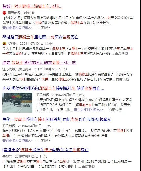每年混凝土攪拌車發(fā)生碰撞的事并非少數(shù),小編在百度上一搜索,心中一痛。發(fā)生這種事,對(duì)混凝土攪拌站、司機(jī)、受害人都是有影響的。輕則罰款、名義受損,重則當(dāng)場丟失性命。