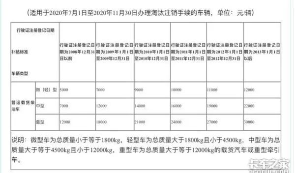 浙江省麗水市的國(guó)三淘汰補(bǔ)貼分為兩個(gè)階段,以7月1日為分界線,2020年6月30日之前淘汰國(guó)三柴油貨車最高可拿到3.7萬元補(bǔ)貼;7月1日至11月30日,最高可享受補(bǔ)貼3萬元。