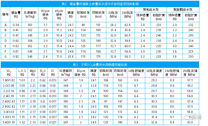堿含量對(duì)混凝土質(zhì)量及水泥與外加劑的適應(yīng)性有重要的影響,水泥中過(guò)量堿的存在會(huì)使水泥漿體的塑化效果變差,流動(dòng)性的經(jīng)時(shí)損失變大。