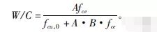 其中,A,B均為回歸系數(shù)。回歸系數(shù)A和B應(yīng)根據(jù)工程所使用的水泥、骨料和通過試驗(yàn)建立水灰比與混凝土強(qiáng)度關(guān)系式確定,當(dāng)不具備上述試驗(yàn)資料時(shí),對碎石混凝土A可取0.48,B可取0.52,對卵石混凝土A可取0.50,B可取0.61;fce為水泥的實(shí)際強(qiáng)度,MPa;fcu,0為混凝土施工的配制強(qiáng)度,MPa。