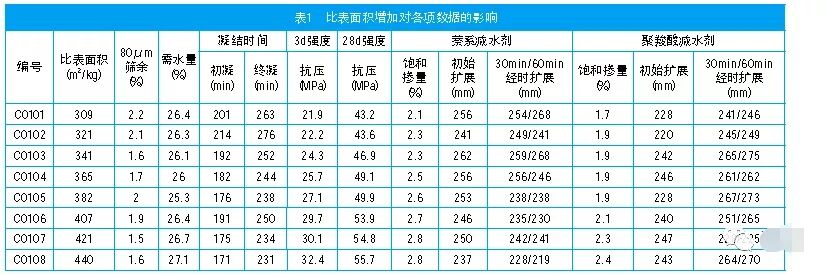 2 水泥品質(zhì)指標(biāo)對(duì)混凝土的影響