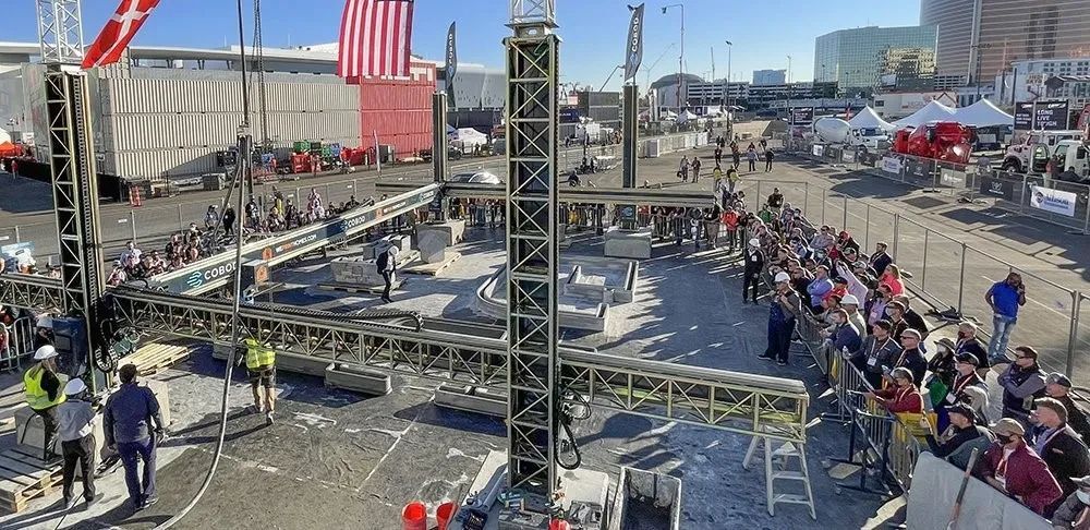 2022 年 2 月,COBOD International 與材料供應(yīng)商 Quikrete 和開發(fā)商 We Print Homes 在拉斯維加斯混凝土世界大會上在現(xiàn)場觀眾面前進行了為期三天的 3D 打印混凝土(來源:COBOD)
