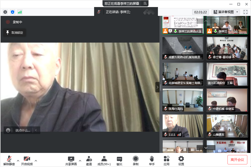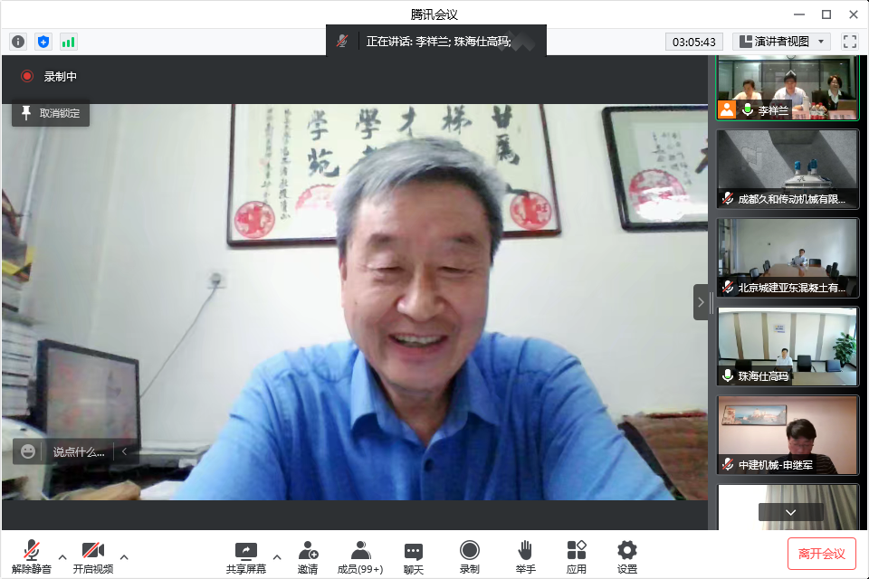 混凝土機械分會的年會還得到很多行業(yè)老前輩,專家、高工、行業(yè)精英的關(guān)注和支持,在自由交流環(huán)節(jié),中國工程機械工業(yè)協(xié)會名譽會長祁俊祁會長也發(fā)言祝賀,首先祝賀大會線上會議開的非常成功,他呼吁現(xiàn)在中國混凝土機械在全世界已占主導(dǎo)地位,站在領(lǐng)跑位置,肯定了行業(yè)的領(lǐng)先性,但由于各種因素的疊加,行業(yè)也到了最困難的時候,協(xié)會要增加上下游的互動,爭取支持,抱團取暖,希望混凝土機械在工程機械整個領(lǐng)域大家共同進步,相互幫扶渡過難關(guān)。
