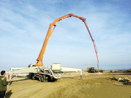 中聯(lián)重科52米臂架泵車于2013年12月入駐阿塞拜疆,當?shù)貧夂蚴趾洌鳛槭着_入駐阿塞拜疆的中聯(lián)泵車,本次交付具有標志性意義。中聯(lián)重科52米臂架泵車擁有智能仿生6RZ專利、高效大排量、智能溫控節(jié)能等技術,通過泵送系統(tǒng)、臂架長度和底盤的科學匹配,最大泵送方量達200 m3/h,適合本次大方量工程要求。在國內外各種復雜的工地條件上,其多臂復合運動控制、全行程控制、單邊支腿同步操作等技術大大提高了泵送效率,深受客戶青睞。