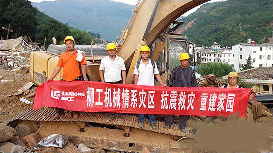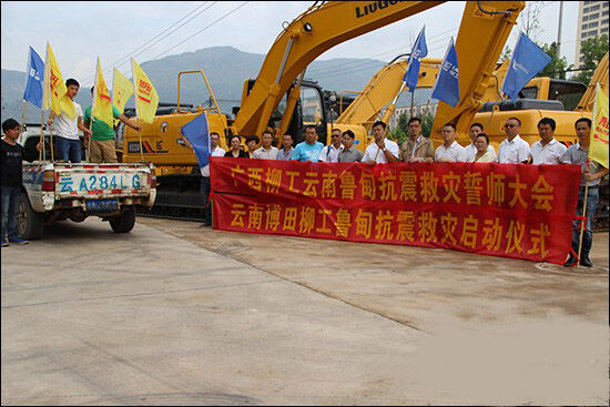 據(jù)柳工云南魯?shù)榫葹膽毙》株犌胺阶钚孪ⅲ毫ぞ葹膽毙》株?月6日上午7點30分,從昭通向震中重災區(qū)龍頭山鎮(zhèn)出發(fā)。10點到達交通管制區(qū),從這里進入災區(qū),除武警部隊、運送物資和傷員的車輛,其他車輛均不允許進入。柳工救災應急小分隊決定徒步進去,全程約36公里。經(jīng)過近7個小時的艱難跋涉,翻山越嶺,躲避塌方,小分隊于下午5時到達此次地震最嚴重的龍頭山鎮(zhèn)。