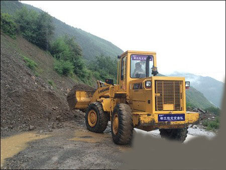 8月8日,柳工抗震救災隊了解到巧家縣需要大型機械設(shè)備進行道路的搶險救災的信息,就立即調(diào)撥1臺CLG855裝載機至巧家縣震區(qū)邊緣,以待隨時調(diào)用。8月11日,巧家縣交通局提出需要設(shè)備進行3條道路的施工搶險,柳工即刻與交通局溝通并現(xiàn)場勘察,確定了施工方案。由于鄉(xiāng)間道路狹窄,僅允許一輛30E裝載機通行搶險,柳工提供了3臺30型裝載機和1臺15噸級挖掘機,分別在3條道路上進行施工。