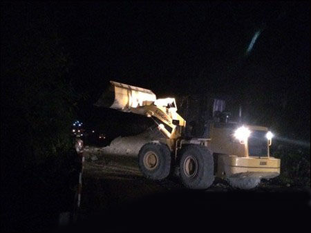8月11日晚上,303省道巧家段由于下雨引起山體塌方,昭通公路局調(diào)撥的1臺柳工CLG855裝載機,也在緊張地進行搶險工作。