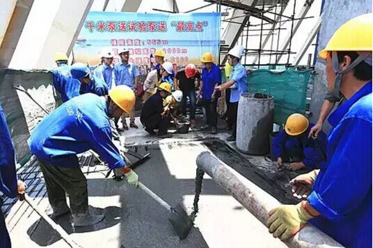 C100混凝土指的是混凝土抗壓強度為100MPa的混凝土,即1平方米C100混凝土上能承受一萬噸的重量。當前,國內(nèi)C100混凝土研發(fā)與使用高度尚在探索中,將C100混凝土泵送到1000米完全是建筑行業(yè)最前沿的探索。