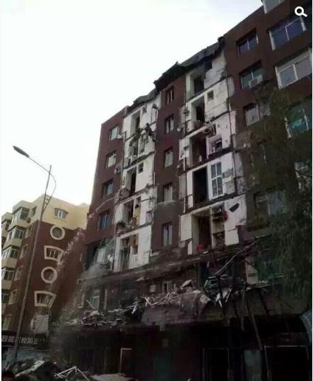 遼源市民曹先生告訴記者,“我當(dāng)時(shí)在屋里休息,就聽(tīng)到‘轟’的一聲,感覺(jué)就像地震一樣,冒出一股濃煙,跑到屋外時(shí)看到對(duì)面樓7樓到3樓的10個(gè)陽(yáng)臺(tái)一起塌了下來(lái)。”