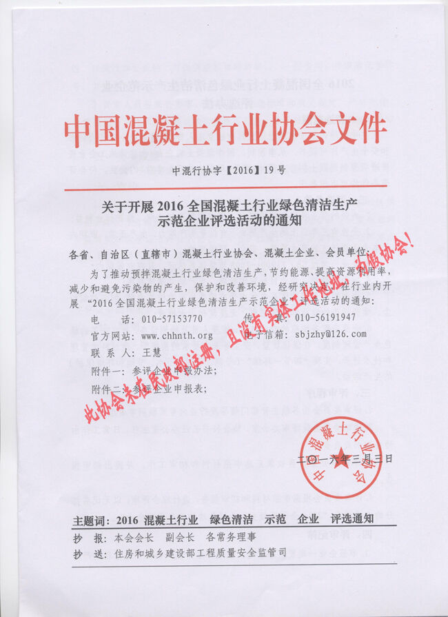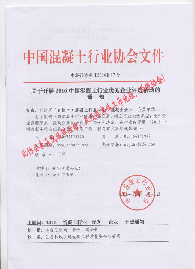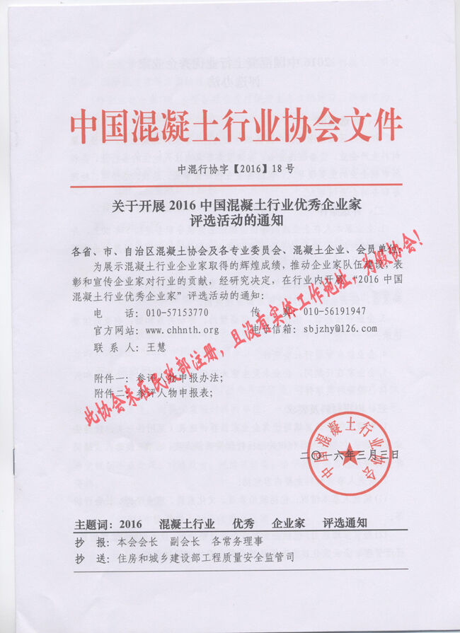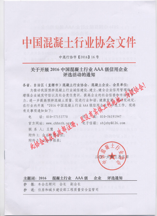 近日,有多家省市協(xié)會和有關(guān)生產(chǎn)企業(yè)向分會秘書處反映收到“中國混凝土行業(yè)協(xié)會”2016(16、17、18、19、20)文件開展所謂的“中國混凝土行業(yè)評選活動”的通知。