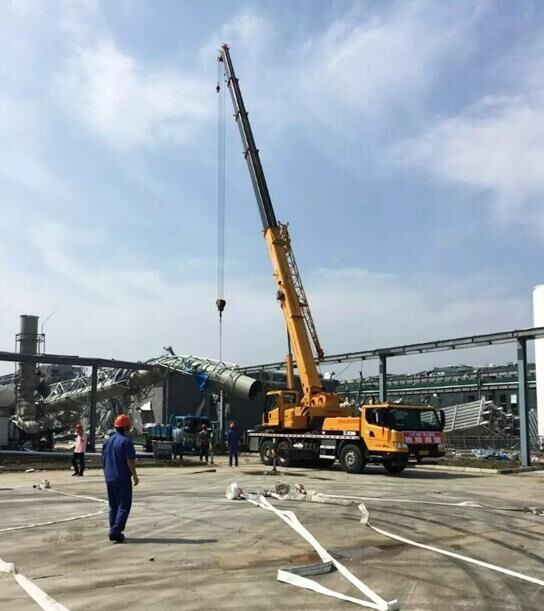 23日下午,由6名人員、4臺起重機(jī)、1臺挖掘機(jī)和兩輛服務(wù)車組成的救援小分隊趕到鹽城阜寧縣災(zāi)區(qū),緊急與當(dāng)?shù)鼐仍渚⒄〉寐?lián)系,聽從統(tǒng)一指揮,全力投入現(xiàn)場搶險。