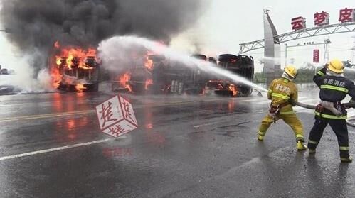 參與施救的消防戰(zhàn)士介紹,當時在現(xiàn)場看到,一輛槽罐車與一攪拌車側(cè)翻在路中央,不遠處是一處加氣站,經(jīng)過火情偵察,發(fā)現(xiàn)載甲醇槽罐車正在猛烈燃燒,槽罐車儲量約30噸,情況危機。為了確保安全,救援官兵立即協(xié)助現(xiàn)場交警實施交通管制、疏散群眾,同時,架設水槍、水炮陣地,防止火勢蔓延,展開滅火。