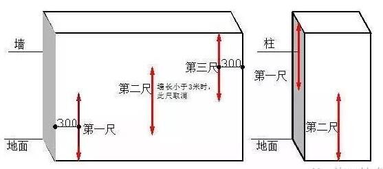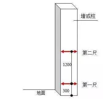 四、垂直度1、指標(biāo)說(shuō)明:反映層高范圍內(nèi)剪力墻、混凝土柱表面垂直的程度。2、測(cè)量工具:2米靠尺3、測(cè)量方法和數(shù)據(jù)記錄:(1)剪力墻:任取長(zhǎng)邊墻的一面作為1個(gè)實(shí)測(cè)區(qū)。累計(jì)實(shí)測(cè)實(shí)量不得少于5個(gè)實(shí)測(cè)區(qū)。(2)當(dāng)墻長(zhǎng)度小于3米時(shí),同一面墻距兩端頭豎向陰陽(yáng)角約30cm位置,分別按以下原則實(shí)測(cè)2次:一是靠尺頂端接觸到上部混凝土頂板位置時(shí)測(cè)1次垂直度,二是靠尺底端接觸到下部地面位置時(shí)測(cè)1次垂直度。混凝土墻體洞口一側(cè)為垂直度必測(cè)部位。這2個(gè)實(shí)測(cè)值分別作為判斷該實(shí)測(cè)指標(biāo)合格率的2個(gè)計(jì)算點(diǎn)。(3)當(dāng)墻長(zhǎng)度大于3米時(shí),同一面墻距兩端頭豎向陰陽(yáng)角約30cm和墻中間位置,分別按以下原則實(shí)測(cè)3次:一是靠尺頂端接觸到上部混凝土頂板位置時(shí)測(cè)1次垂直度,二是靠尺底端接觸到下部地面位置時(shí)測(cè)1次垂直度,三是在墻長(zhǎng)度中間位置靠尺基本在高度方向居中時(shí)測(cè)1次垂直度。混凝土墻體洞口一側(cè)為垂直度必測(cè)部位。這3個(gè)實(shí)測(cè)值分別作為判斷該實(shí)測(cè)指標(biāo)合格率的3個(gè)計(jì)算點(diǎn)。(4)混凝土柱:任選混凝土柱四面中的兩面,分別將靠尺頂端接觸到上部混凝土頂板和下部地面位時(shí)各測(cè)1次垂直度。這2個(gè)實(shí)測(cè)值分別作為判斷該實(shí)測(cè)指標(biāo)合格率的2個(gè)計(jì)算點(diǎn)。4、示例: