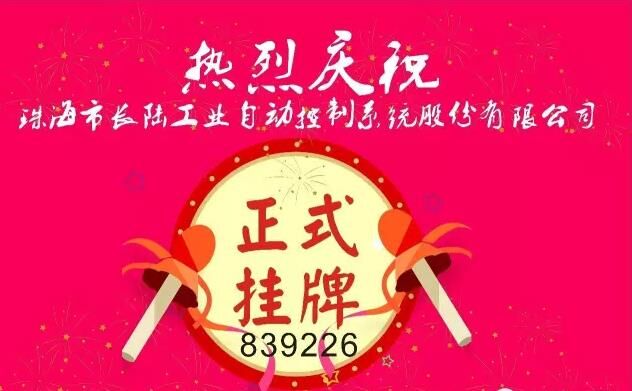 9月13日,珠海市長(zhǎng)陸工業(yè)自動(dòng)控制系統(tǒng)股份有限公司在全國(guó)中小企業(yè)股份轉(zhuǎn)讓系統(tǒng)(簡(jiǎn)稱“新三板”)正式掛牌,證券簡(jiǎn)稱為“長(zhǎng)陸工控”,證券代碼為“839226”。