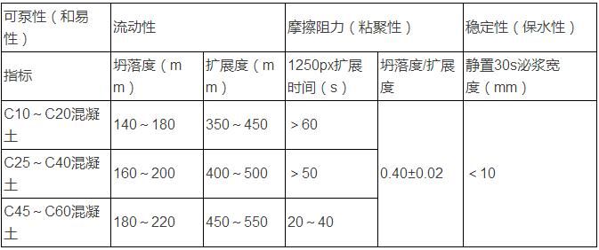混凝土可泵性是表示混凝土在泵壓下沿輸送管道流動的難易程度以及穩(wěn)定程度的特性[1]??杀眯砸螅夯炷涟韬衔镌诒们粌?nèi)易于流動,以充滿所有空間;有良好的粘聚性、保水性,在泵送過程中不分層、不離析、不泌水;混凝土拌合物與管壁之間以及混凝土內(nèi)摩擦阻力較小[5]。泵送性能指標包括:坍落度、擴展度和摩擦阻力(表征流動的難易程度),壓力泌水值(表征流動的穩(wěn)定程度)?;炷量杀眯耘c混凝土拌合物的和易性相對應(yīng)。
