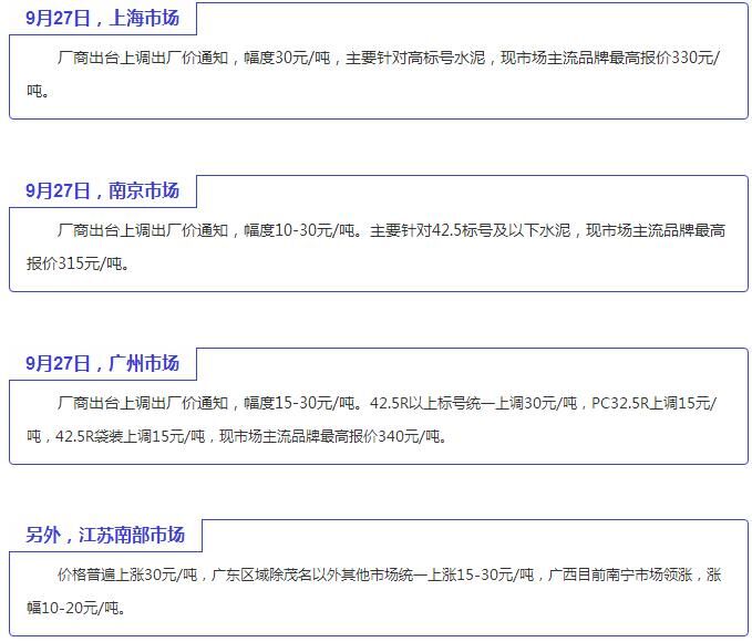 水泥方面,東北地區(qū)即將進(jìn)入往年慣例長(zhǎng)時(shí)間的停窯限產(chǎn)階段,避免產(chǎn)能過(guò)剩,穩(wěn)定現(xiàn)有價(jià)格,因此短期內(nèi)價(jià)格波動(dòng)的可能性不大。華北地區(qū)行情持續(xù)升溫,水泥銷(xiāo)售情況良好,再加上停窯措施落實(shí)到位。從現(xiàn)階段市場(chǎng)進(jìn)度來(lái)看,預(yù)計(jì)10月中上旬水泥價(jià)格進(jìn)行上調(diào)。