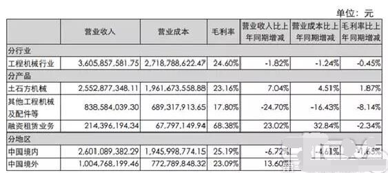三一重工2016年半年度報告數(shù)據(jù)(部分) |