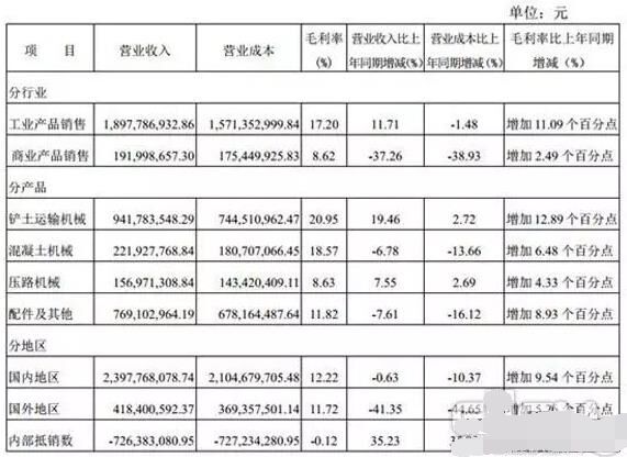 徐工2016年半年度報告數(shù)據(jù)(部分) |