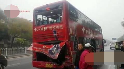 昨天6點多,在中環(huán)線育紅路由鐵東路去往紅星路方向,一輛載滿水泥的水泥攪拌車在行駛過程中突然之間撞上前方的一輛48路雙層公交車,導致公交車上多人受傷。