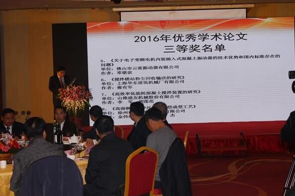 晚宴進(jìn)行過程中,中國工程機(jī)械工業(yè)協(xié)會混凝土機(jī)械分會符忠軒會長上臺宣讀了《關(guān)于2016年學(xué)術(shù)論文評獎結(jié)果的通報》,并進(jìn)行了優(yōu)秀論文頒獎活動。