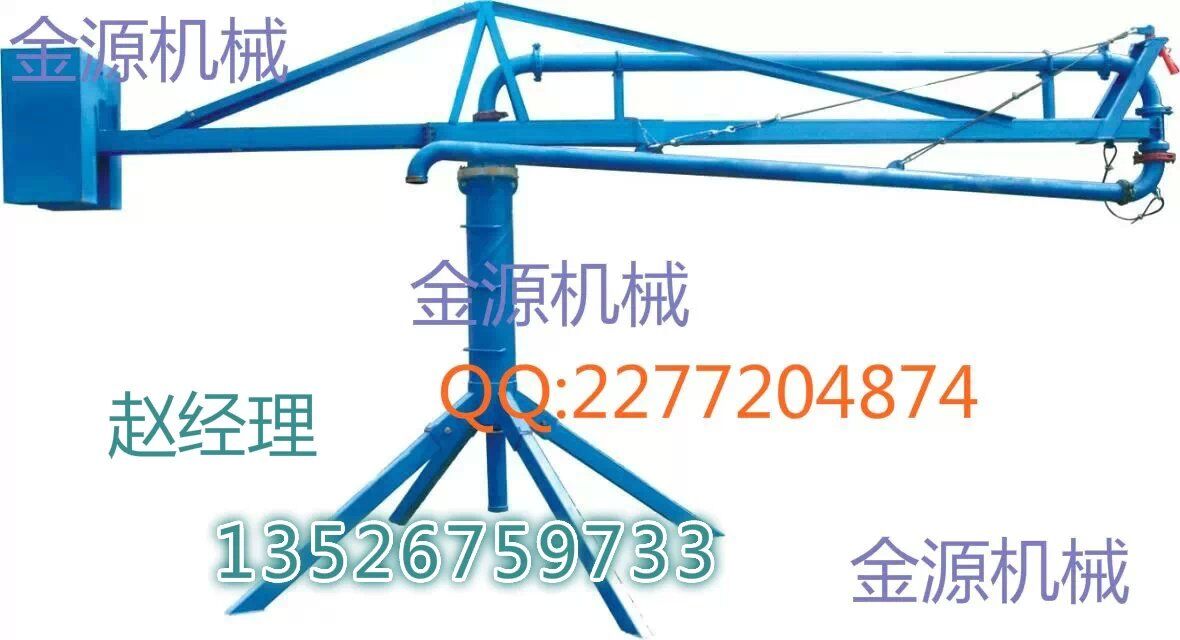 結構:、插銷、立架、構成的底座是固定部分,其上通過回轉支承與上部回轉部分相連,上主梁架、平衡臂、平衡臂架拉桿、上橫桿組成后回轉部分。立管上有回轉卡篐接頭。通過人力拉動,可使整個回轉部分回轉360度。上梁主架前端連接有一個回轉支座與前橫桿、前拉桿組成前回轉部分,在人力拉動下可繞回轉支座旋轉300度。由兩部分回轉架組成的合成運動就能覆蓋所有布料半徑范圍的布料點。