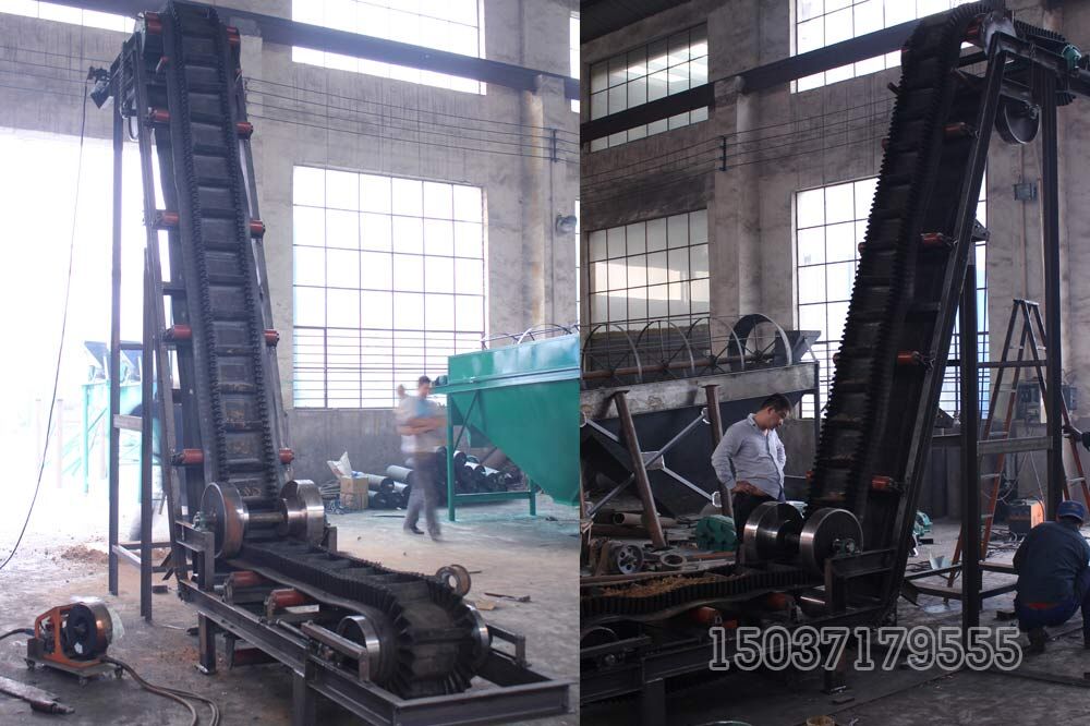 大傾角皮帶輸送機具有通用帶式輸送機結(jié)構(gòu)簡單,運行可靠,維修方便等優(yōu)點,并具有大傾角輸送、結(jié)構(gòu)緊湊、占地少等特點,因而是大傾角輸送和垂直提升物料的理想設(shè)備。大傾角皮帶輸送機是有機肥生產(chǎn)的主要設(shè)備,在有機肥的生產(chǎn)中原料以及成品的垂直提升就需要大傾角皮帶輸送機來完成。