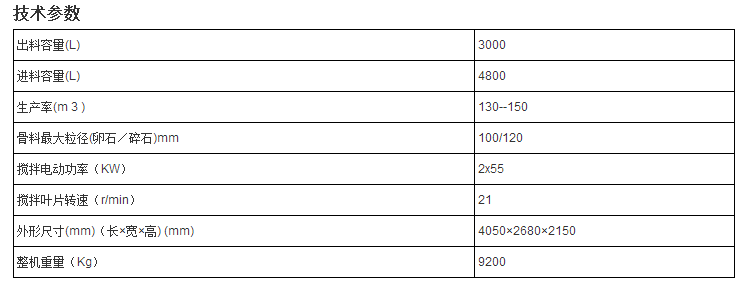 JS3000強(qiáng)制式雙臥軸混凝土攪拌機(jī)每次出料為3立方米,也稱(chēng)為3方混凝土攪拌機(jī),循環(huán)周期是60S,180攪拌站主機(jī)使用的就是該機(jī)。