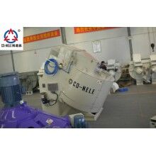 CQM系列高效強力混合機在強力混合機的料盤中,偏心安裝攪拌星與高速轉(zhuǎn)子。料盤以低速順時針方向旋轉(zhuǎn),連續(xù)不斷地將物料送入中速逆時針轉(zhuǎn)動的攪拌星的運轉(zhuǎn)軌跡內(nèi),借助料盤旋轉(zhuǎn)及刮料板的作用,將物料翻轉(zhuǎn)送入高速逆時針旋轉(zhuǎn)的高速轉(zhuǎn)子運行的軌跡內(nèi)進行混料。在連續(xù)的、逆流相對運動的高強度混練過程中,物料能夠在很短的時間內(nèi)混合均勻一致,