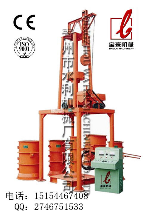 LJC立式擠壓水泥制管機能利用石屑(石場廢料)、礦渣、粉煤灰、沙子另加20%的水泥,生產內徑150-1000mm,長度1000mm的承插口、平口、企口、帶孔無筋水泥管,制管工藝先進,抗內水壓可達0.2-0.5MPa,承接口管一次成型,即使脫模,電機總功率為9-12.5千瓦。每臺班6-8人,效率可達10-15節(jié)/小時??蓮V泛應用于農田灌溉、機井、小型揚水站、市政排水、公路涵洞等各個方面。