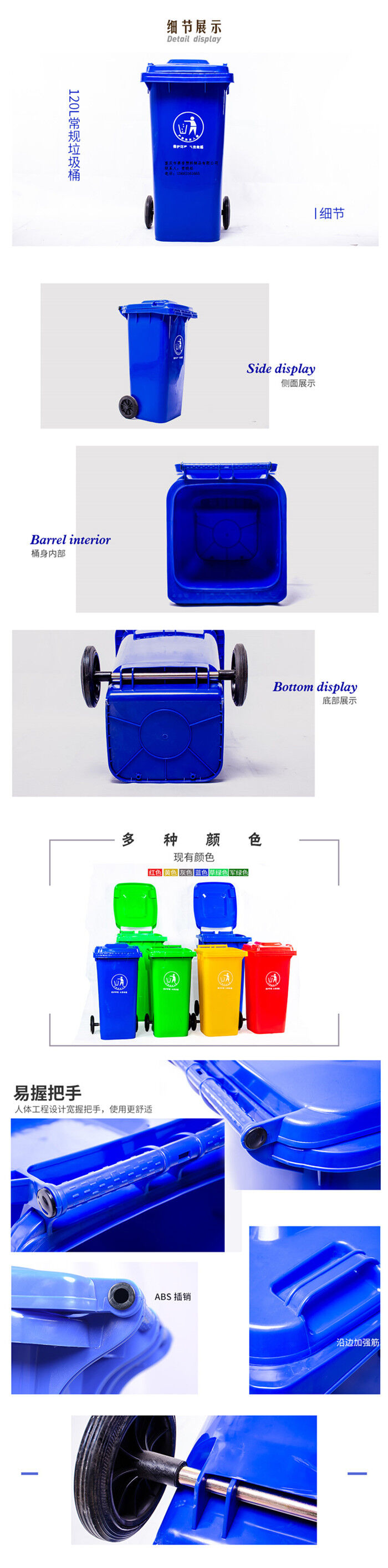 歸屬行業(yè):重慶廠家直銷環(huán)衛(wèi)塑料垃圾桶 120L帶輪上掛車餐廚垃圾桶生產(chǎn)廠家