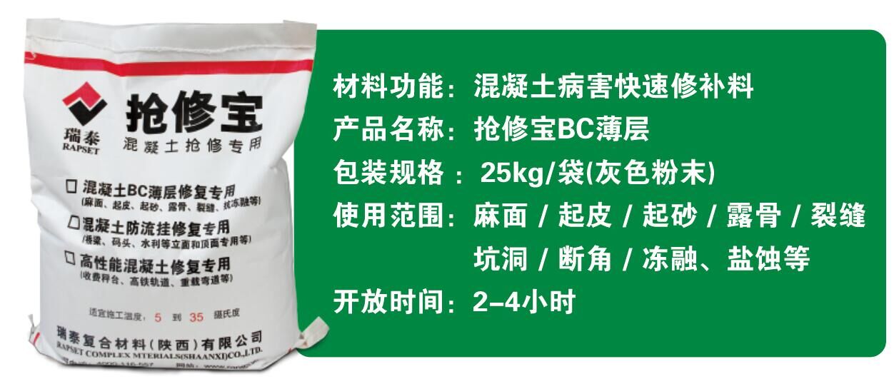 3、超強粘接性能:利用材料本身的粘接能力和表面能原理,修補面與原混凝土反應(yīng)成統(tǒng)一的整體,從而形成很高粘接強度,施工后2小時的粘接強度可達(dá)到1.6Mpa,可與各種病害部位粘接,粘接能力基本不受厚度影響,可實現(xiàn)超薄層修補,在伸縮、碾壓、推移等外力下而不脫落、不碎裂。