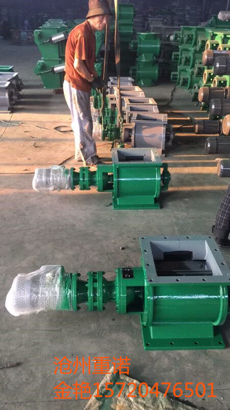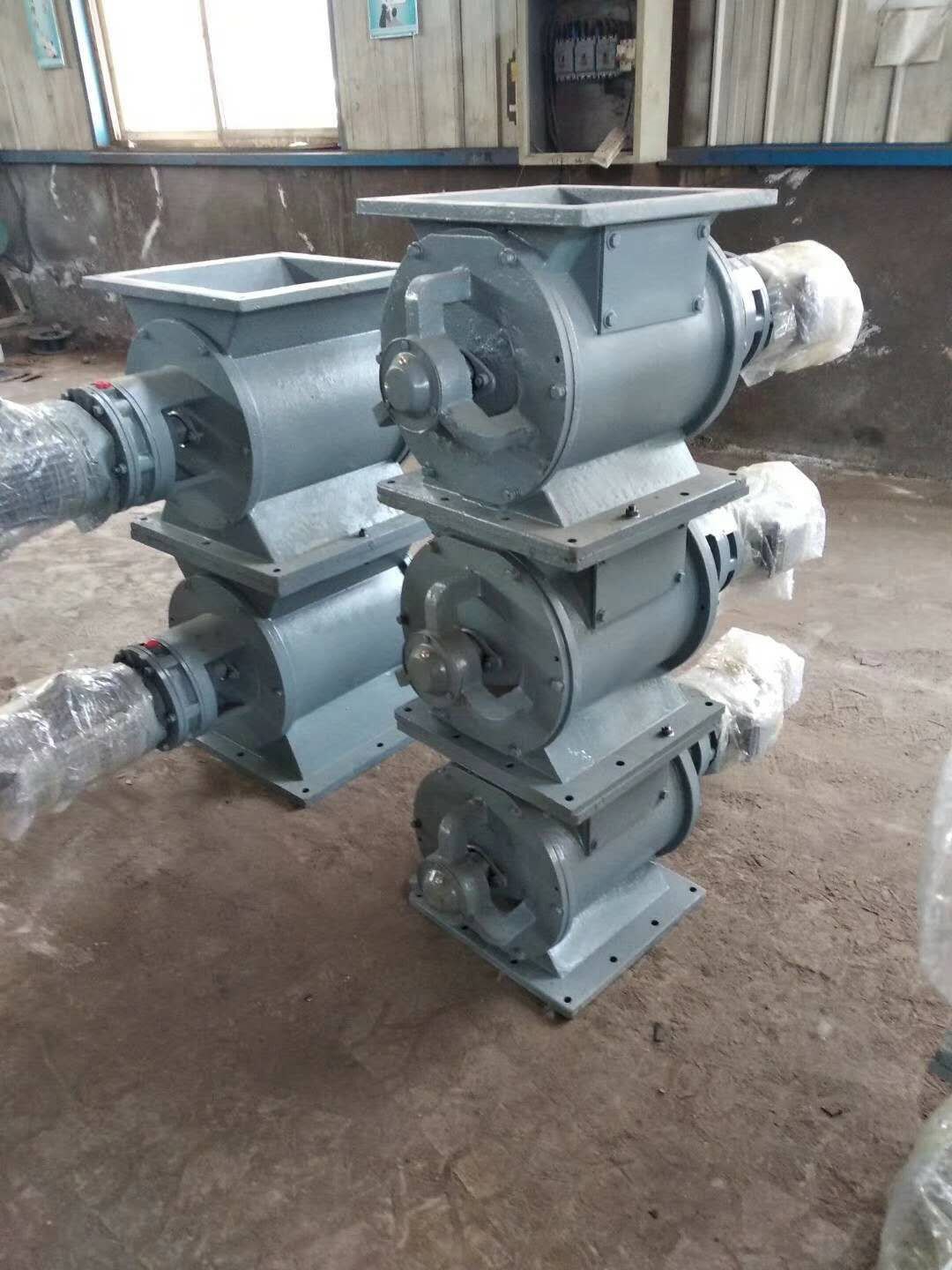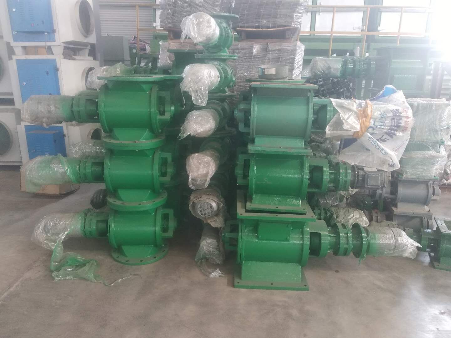 工作原理:星型卸料器工作時,粉塵靠重力落入,充滿上面和側(cè)面的星形葉片空格。葉片轉(zhuǎn)子由電動機(jī)通過減速機(jī)轉(zhuǎn)動軸帶動,葉輪轉(zhuǎn)到下部粉塵靠自重卸下。這種卸塵器一般都安裝在除塵器灰斗下部,為保證連接處的嚴(yán)密不漏風(fēng),在回轉(zhuǎn)卸料器的上部應(yīng)經(jīng)常保持(儲存)一定高度的粉塵。因?yàn)槿~輪轉(zhuǎn)動時,卸完粉塵后葉輪轉(zhuǎn)上的那一面經(jīng)常是沒有粉塵的,所以容易使空氣漏入。為了保持一定高度的灰柱,而且不致卸空,*在灰斗內(nèi)裝設(shè)料位信號設(shè)施,并與卸塵閥的電動機(jī)建立連鎖。