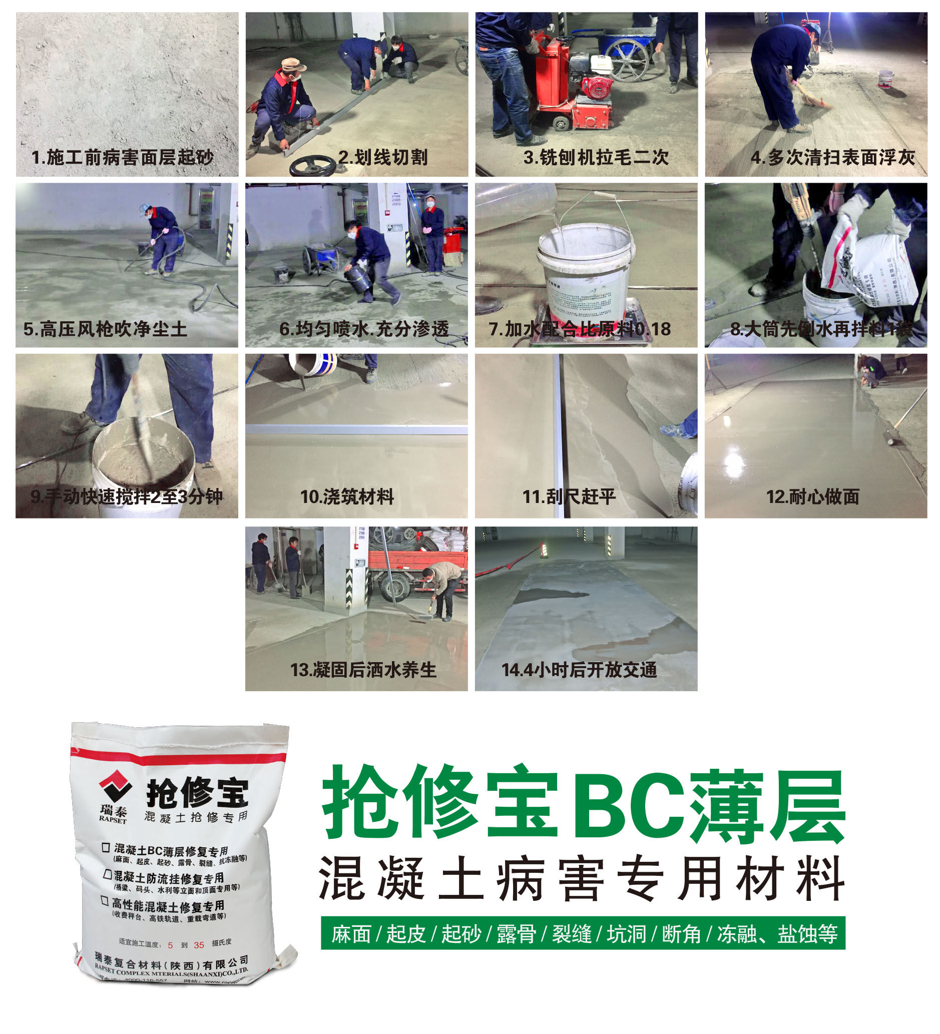 水泥路面翻砂起皮起灰修補(bǔ)料,往往會(huì)出現(xiàn)一些問(wèn)題:如混凝土自身磨損,冬天凍融破壞,空氣化學(xué)腐蝕,鋼筋銹蝕,保護(hù)層脫落,露筋,火災(zāi)等別的原因引起的混凝土表面蜂窩,麻面等。為了確保混凝土結(jié)構(gòu)的可靠性和經(jīng)濟(jì)性,使之盡可能地提高使用年限和使用保障,是如今廠區(qū)地面總是出現(xiàn)的起皮、起砂、露骨、麻面工程實(shí)踐中迫切需要解決的問(wèn)題。嚴(yán)重影響了廠區(qū)車(chē)輛的通行,繼而影響到生產(chǎn),影響了經(jīng)濟(jì)效益。如果重新澆筑混凝土,就一定停產(chǎn),因?yàn)槠胀ㄋ嗷炷恋酿B(yǎng)護(hù)周期很少也得30天,由于訂單量大,停產(chǎn)幾乎是不可能的。正在不知如何是好之際,王工通過(guò)網(wǎng)絡(luò)搜索,找到了搶修寶水泥混凝土路面快速修補(bǔ)材料。