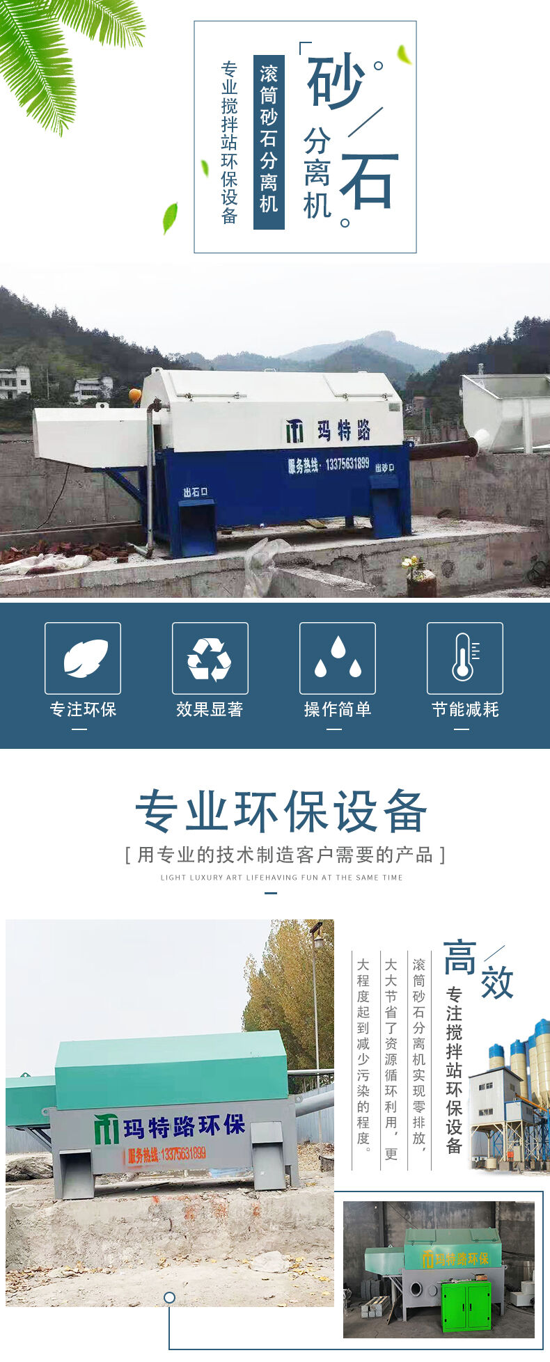 滾筒式砂石分離機主要有導(dǎo)料流槽、內(nèi)外螺旋篩砂滾筒、出石口、溢水槽、噴淋管、驅(qū)動系統(tǒng)、供水系統(tǒng)及控制系統(tǒng)共八個部分組成。當(dāng)殘留混凝土與水進入導(dǎo)料槽后,同時連續(xù)注入循環(huán)水,在水流的沖擊下,混合料漿水流入漿池。清洗過的砂子、石子分別從出砂口和出石口落入料池。流入攪拌池