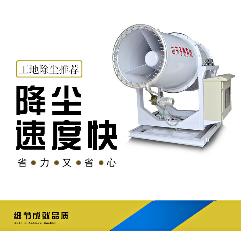 子路環(huán)??萍加邢薰疽豢钔ㄟ^(guò)高壓風(fēng)機(jī)將儲(chǔ)存的水壓縮成灰塵大小,在利用不銹鋼噴嘴部位將水霧化吹向高空凈化空氣的一種新型環(huán)保除塵產(chǎn)品。這款產(chǎn)品名字叫高射程霧炮機(jī),