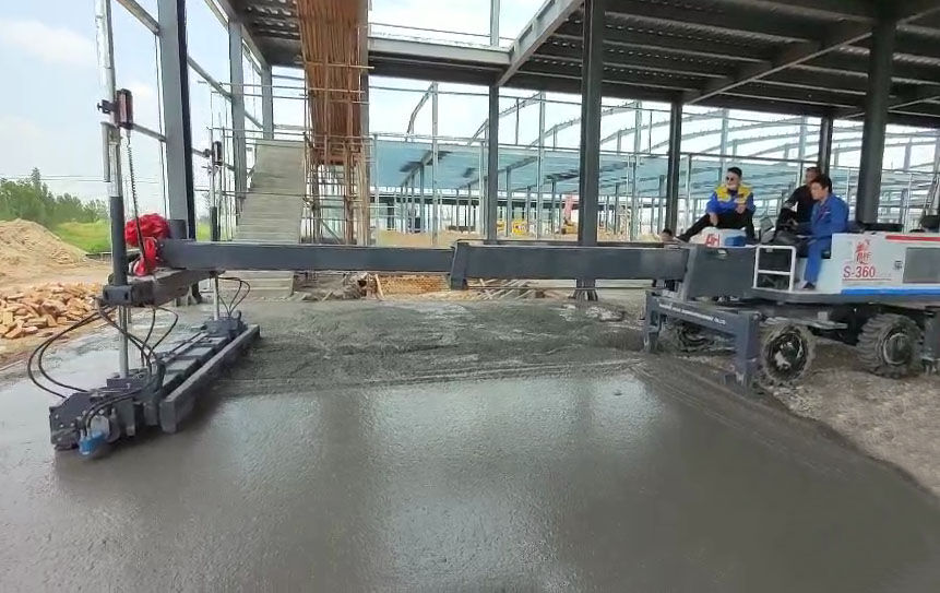 混凝土激光攤鋪機(jī)是用刮板將高出的混凝土帶走并初步刮平,達(dá)到設(shè)計要求的標(biāo)高。液壓驅(qū)動振動馬達(dá)產(chǎn)生震動,頻率為6000次/分鐘,帶動整個振動板一起對混凝土產(chǎn)生振搗。激光攤鋪機(jī)找平不需要拉控制線,也不需要支側(cè)模板來控制地面標(biāo)高,而由攤鋪機(jī)上的激光測控系統(tǒng)實時控制,只要激光發(fā)射器不受干擾,無論攤鋪機(jī)移動到哪里,都能確保鋪筑后的地面整體上的標(biāo)高不受影響。混凝土激光攤鋪機(jī)是一種以激光為基準(zhǔn)平面,通過實時控制整平頭,從而實現(xiàn)混凝土高精度、快速整平的設(shè)備,是降低企業(yè)施工中成本支出的手段。在經(jīng)濟(jì)蕭條下,地坪企業(yè)會通過選擇激光整平機(jī)方式施工,節(jié)約固定投資、降低人工成本,降低運營成本。實際上,企業(yè)選擇混凝土激光整平機(jī)的理由并非只有這些。 自動化程度高,勞動強(qiáng)度小,采用激光整平機(jī)等設(shè)備使繁重的體力勞動變?yōu)橛脵C(jī)械攤鋪、振搗、找平、提漿、抹面,使操作人員減少30%,同時減輕勞動強(qiáng)度。經(jīng)濟(jì)效益高應(yīng)用激光整平機(jī)等設(shè)備,比傳統(tǒng)工藝節(jié)省成本2-3元/㎡,分縫少,后期維護(hù)費用降低,從而使經(jīng)濟(jì)效益明顯提高。