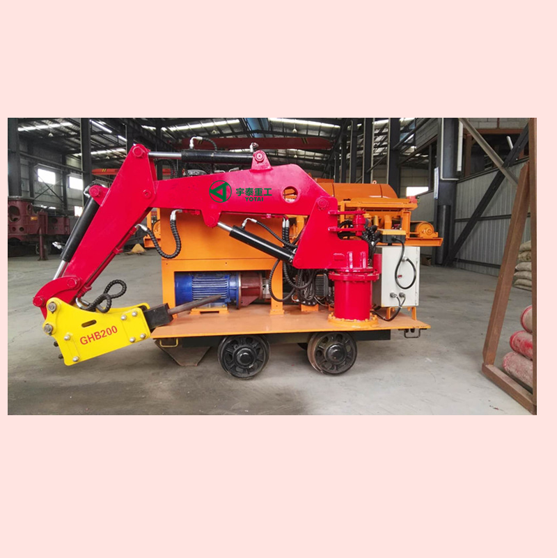 湖南宇泰重工生產(chǎn)的大石破碎機(jī)是集成行走滾輪、動力裝置、控制柜、機(jī)械臂和液壓破碎錘的機(jī)、電、液三合一的機(jī)械設(shè)備,主要應(yīng)用于礦山井下大石的破碎。該機(jī)能處理邊長1000毫米以下物料,其抗壓強(qiáng)度最高可達(dá)160兆帕。具有破碎比大,破碎后物料呈立方體顆粒等優(yōu)點。