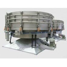 從運(yùn)行軌跡來看,搖擺篩是一種非線性慣性振動(dòng)篩,基本的回轉(zhuǎn)運(yùn)動(dòng)與人工篩分相類似。偏心率從2540mm可調(diào),低速V型皮帶驅(qū)動(dòng)從120360rmp可調(diào)。每一種產(chǎn)品的停留時(shí)間可以通過搖擺篩的徑向與切角朝驅(qū)動(dòng)軸線方向進(jìn)行調(diào)整。因此建立水平與拋擲三維翻滾運(yùn)動(dòng)。物料從中心到邊緣在整個(gè)篩面上均勻分散,從而以螺旋運(yùn)動(dòng)往軸外傳播。細(xì)小顆粒從而完成了整個(gè)篩分過程。水平與垂直加速度隨著粒子的運(yùn)動(dòng)而增加,接近篩孔尺寸的顆粒隨之成功分離;較大顆料被運(yùn)送至出口處,出口處由一個(gè)可調(diào)節(jié)的導(dǎo)向裝置控制流量中,該導(dǎo)向裝置是控制物料停留時(shí)間的另一個(gè)因素。此次過程在每篩層之間重復(fù)進(jìn)行。